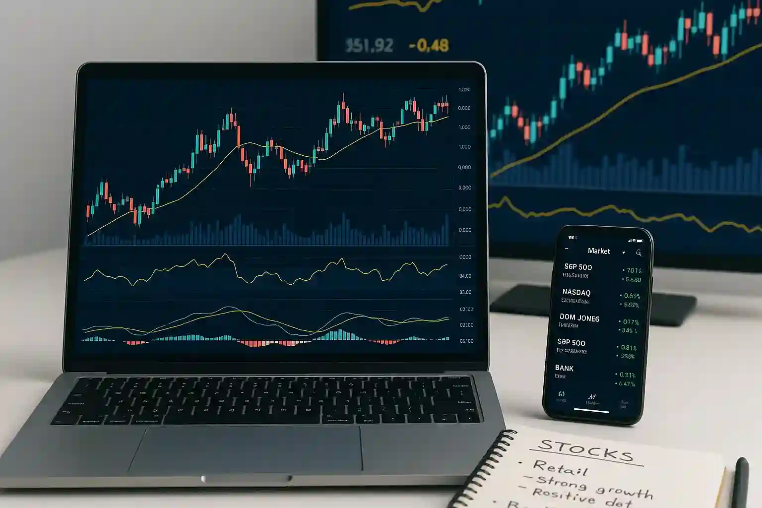 Retail performance during consumer spending peaks supports Vishal Mega Mart’s expansion approach. Banking stocks like SBI gain from credit pipeline growth combined with solid asset quality and capital buffers, confirmed by movements in djia today and global stock market news.