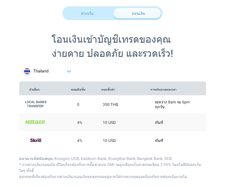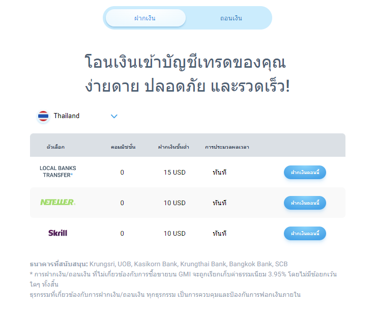 การฝาก-ถอนเงินของ GMI Market ลูกค้าสามารถทำได้ 3 ช่องทาง คือ