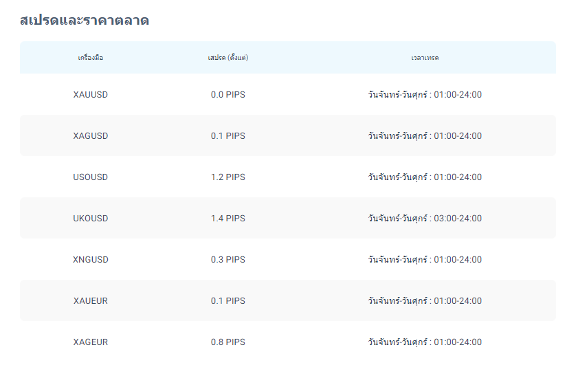 | สินทรัพย์ที่เทรดได้ | Forex, ดัชนี, ทอง, น้ำมัน, โลหะเงิน |