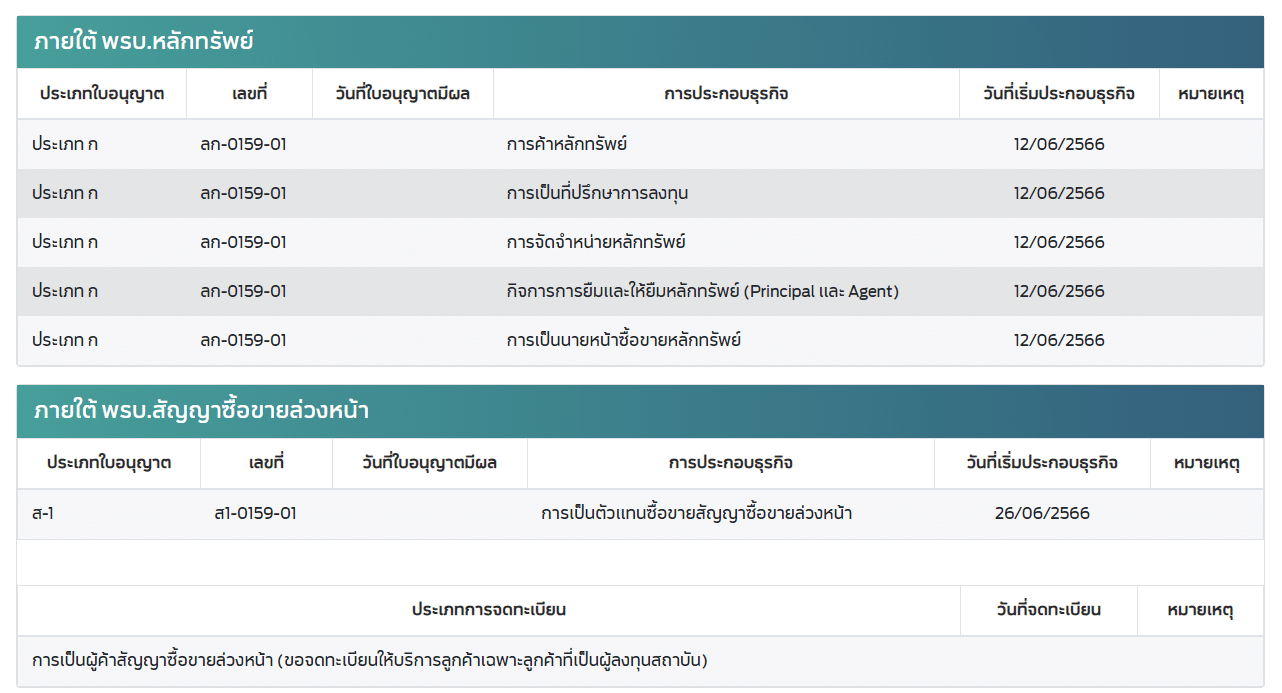 - ใบอนุญาตประกอบธุรกิจหลักทรัพย์ แบบ ก ภายใต้ พรบ.หลักทรัพย์
