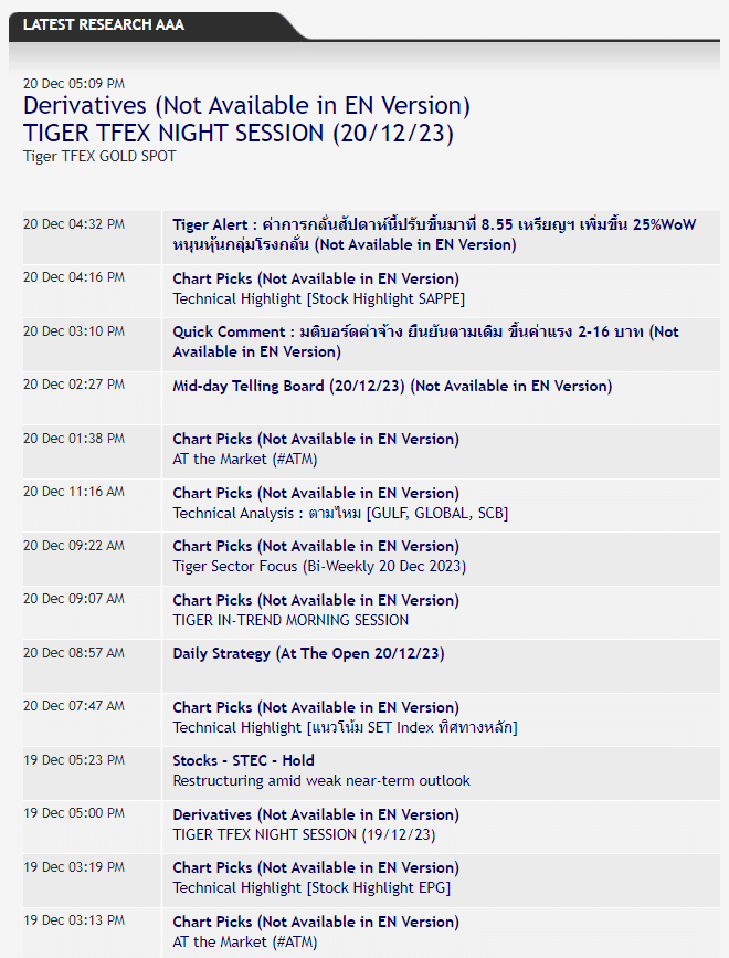 • Research บทวิเคราะห์ส่งตรงจากโบรกเกอร์