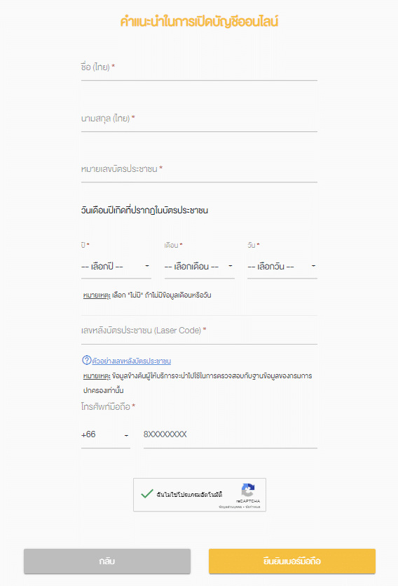 | Reference 1 | เลขที่บัตรประจำตัวประชาชน 13 หลัก |