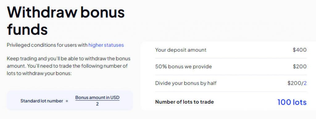 • โบนัสเงินฝากคุณสามารถรับโบนัสตั้งแต่ 10% ถึง 50% จากการฝากทุกครั้ง ในช่วงเวลาของข้อเสนอพิเศษ เทรดเดอร์มักจะได้รับโบนัสเงินฝาก 100%