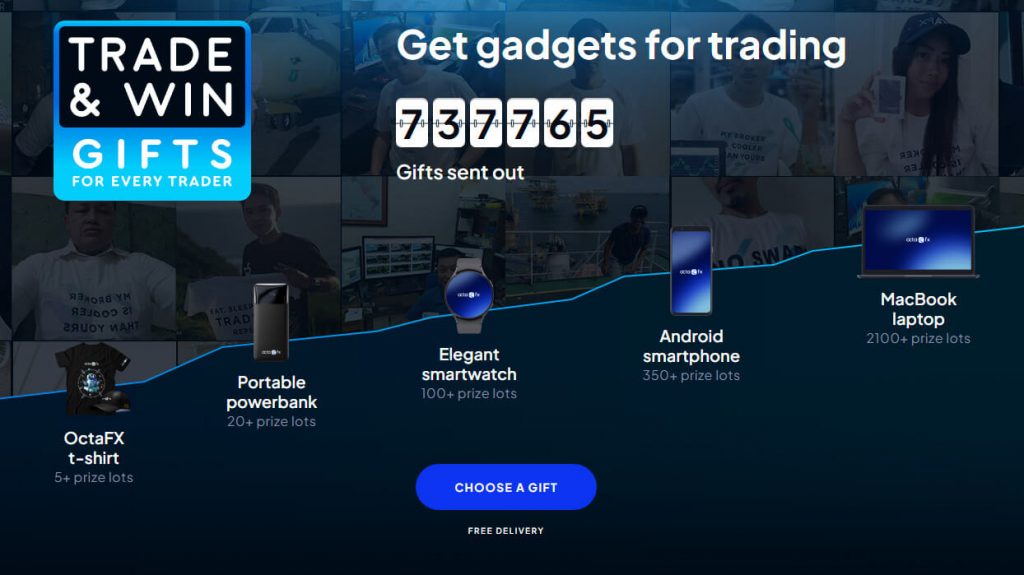 • โปรแกรม Trade and Win คุณรวบรวมล็อตรางวัลสำหรับการซื้อขายกับ Octa และใช้จ่ายไปกับ iPhone อุปกรณ์อื่นๆ และชุดสินค้าในคอลเลกชันของขวัญ Octa Trade and Win