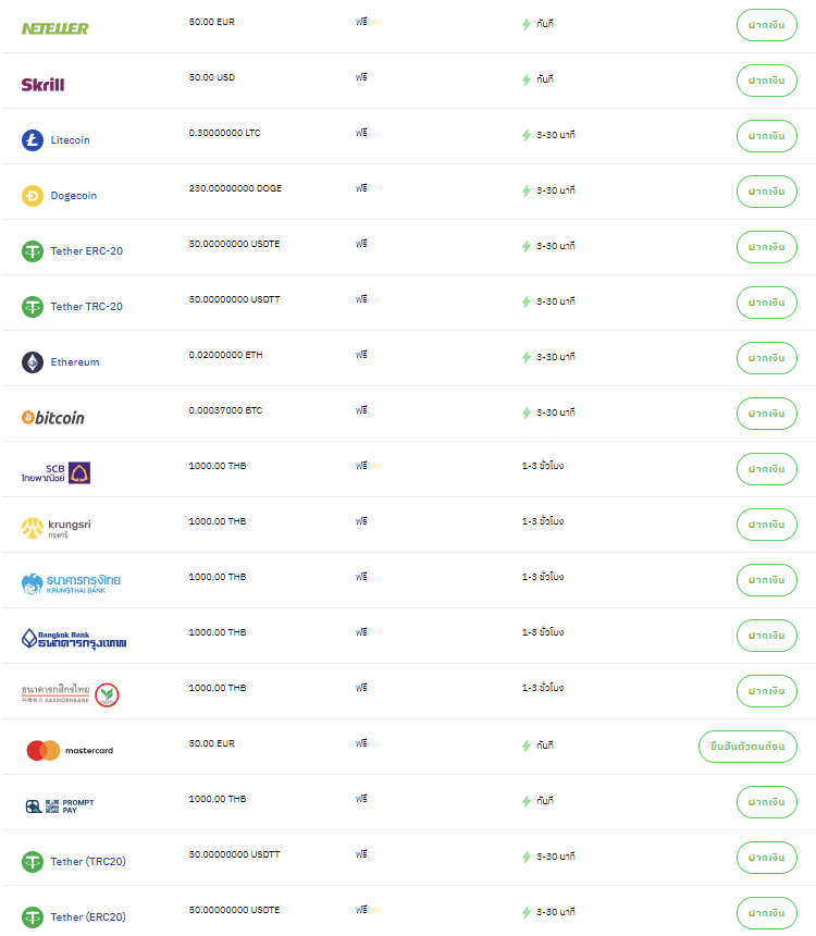 • ไม่มีค่าธรรมเนียมการฝากและถอนเงิน