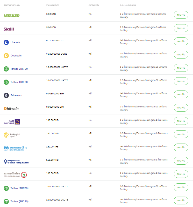 ตัวเลือกการชำระเงินและการถอนเงิน