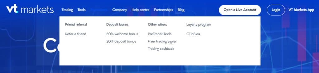 ด้วยข้อเสนอส่งเสริมการขายที่มีประสิทธิภาพ เช่น โบนัสต้อนรับ 50% โบนัสเงินฝาก 20% และโปรแกรมการแนะนำที่ให้ผลกำไร VT Markets พยายามนำเสนอคุณค่าให้กับลูกค้าอย่างต่อเนื่อง โปรแกรมสะสมคะแนน ClubBleu ที่เป็นนวัตกรรมใหม่ของโบรกเกอร์น่ากล่าวถึงเช่นกัน ออกแบบมาเพื่อให้รางวัลแก่เทรดเดอร์ประจำด้วยสิทธิพิเศษและรางวัลพิเศษ