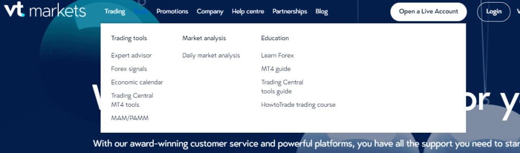 VT Markets ให้ความสำคัญกับการรับรู้ของลูกค้าเป็นอย่างมาก ด้วยทรัพยากรต่าง ๆ เช่น สัญญาณการซื้อขายฟรี จดหมายข่าวรายวัน และเครื่องมือ ProTrader ของ Trading Central สิ่งเหล่านี้ช่วยให้ลูกค้าได้รับข้อมูลเชิงลึกที่สำคัญของตลาดและเครื่องมือในการตัดสินใจ เพื่อให้มั่นใจถึงการซื้อขายที่มีข้อมูลและมีกลยุทธ์