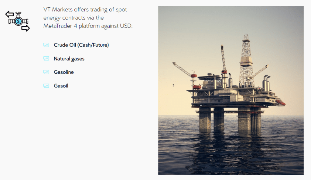 ตลาดพลังงานมีบทบาทสำคัญในเกือบทุกอุตสาหกรรมและกิจกรรมสมัยใหม่ การเคลื่อนไหวของราคาอันเป็นผลจากอุปสงค์และอุปทานคงที่ของสินทรัพย์พลังงานทำให้เกิดโอกาสในการซื้อขายที่ดีเยี่ยม VT Markets ให้การเข้าถึงสัญญาซื้อขายพลังงาน รวมถึงน้ำมันดิบ ก๊าซธรรมชาติ น้ำมันเบนซิน