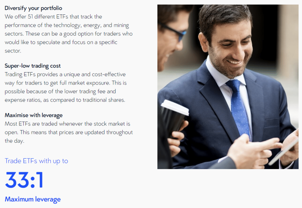 VT Markets ช่วยให้เทรดเดอร์สามารถกระจายพอร์ตการลงทุนของตนด้วย ETF (กองทุนซื้อขายแลกเปลี่ยน) ซึ่งเป็นตะกร้าหลักทรัพย์ที่มีลักษณะเฉพาะซึ่งติดตามดัชนีอ้างอิง ด้วยเลเวอเรจสูงสุด 33:1 นักเทรดสามารถเก็งกำไรการเคลื่อนไหวของราคาของ ETF ที่แตกต่างกัน 51 รายการ ซึ่งติดตามภาคส่วนต่าง ๆ รวมถึงเทคโนโลยี พลังงาน และการขุดเหมือง