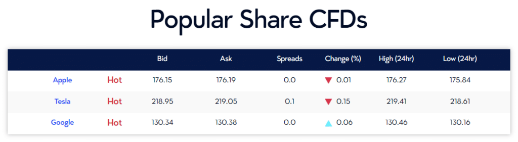 หุ้น CFD (สัญญาสำหรับส่วนต่าง) ช่วยให้นักลงทุนสามารถทำกำไรจากการเคลื่อนไหวของราคาหุ้นโดยไม่ต้องเป็นเจ้าของสินทรัพย์อ้างอิง VT Markets นำเสนอการเข้าถึงบริษัทชั้นนำกว่า 800 แห่งจากอเมริกา ยุโรป และเอเชีย พร้อมเลเวอเรจสูงสุด 20:1