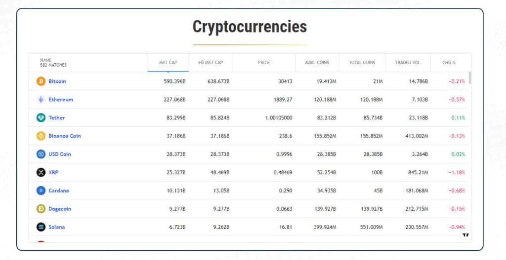 The cryptocurrency section on Loyal Primus offers a breakdown of the most popular coins. While this provides a basic overview of cryptocurrencies, it does not delve into detailed analysis, trading strategies, or the latest developments in the crypto market.