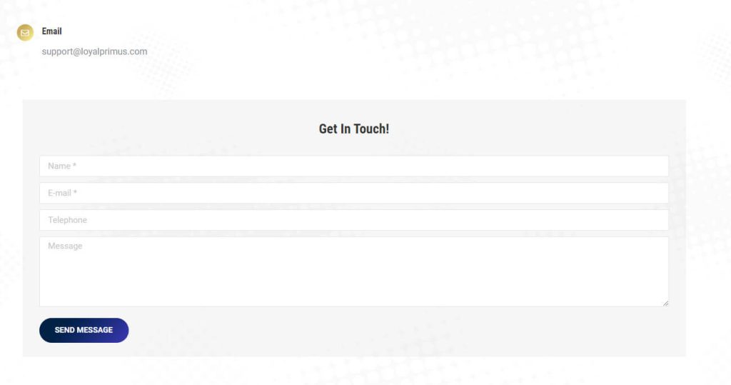 When it comes to customer support, Loyal Primus falls short in providing comprehensive assistance and readily accessible information. Users can navigate to the “Contact” link in the main menu to find information regarding customer support channels. However, it is worth noting that Loyal Primus offers limited customer support options, with only a contact form and an email address (support@loyalprimus.com) available for communication.