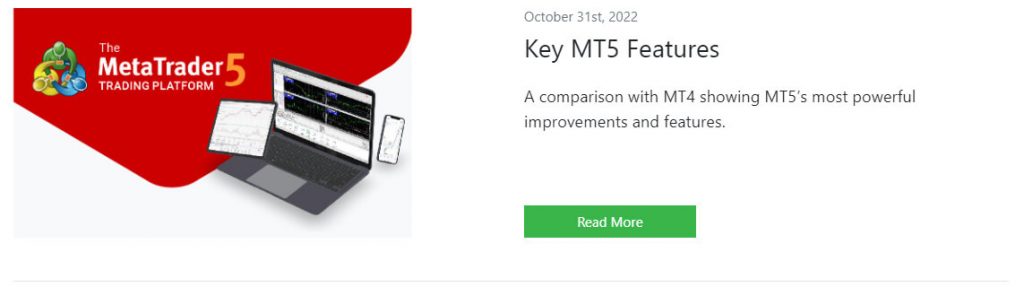 Note that these features are standard in all versions of MT4. Then for MetaTrader5, here are some key features that they list;
