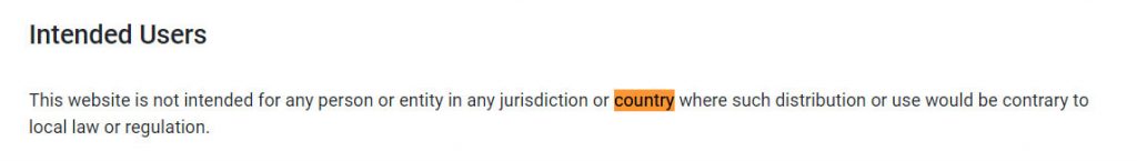 Even through the many documents they provide, there is no reference to prohibited or allowed countries per se. The only information we could find regarding this was in their terms and conditions, and it was a broad term probably stated that way for legal reasons.