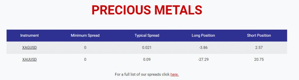 The only information the Tickmill provides for metals and energies is to show (with a table) clients can trade only gold and silver. Compared to other brokers, this is truly the bare minimum when it comes to commodities. We still can’t seem to find oil anywhere on their live quote list. Also, the link they provide to their full metals list is just a redirect to their forex list.