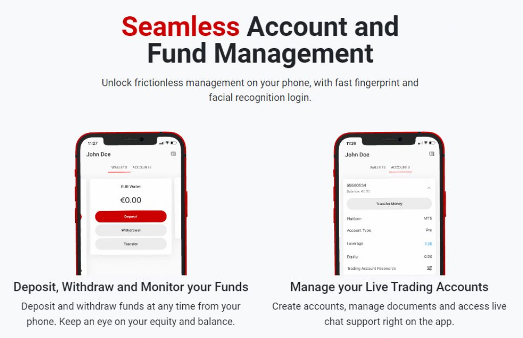 Then you are also able to deposit, withdraw and manage your funds from the app. Do not be confused because other brokers like ZFX actually have a mobile trading app that allows you to trade straight from your smart (mobile) devices, and the Tickmilll app does not have this feature.