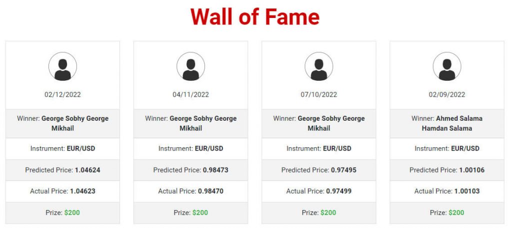 The next “promotion” that this broker offers is their “Trader of the Month,” whereby top-performing traders get a 1,000 USD prize each month. An additional reward is that you are featured on their “wall of fame,” where other traders can see your profits for the specific months you were profitable.