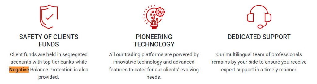 Tickmill does not provide much information on its negative balance protection policy, but they do state that they have it in this section of its website (as you can see from the image below).