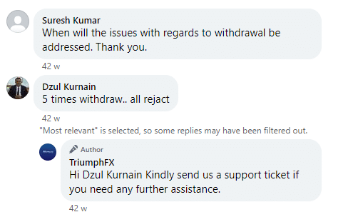 The number of online reviews and ratings warning against TriumphFX on other sites, tarnish this company’s reputation. Moreover, searches like ‘triumphfx Malaysia scam’ and ‘tfxi scam Malaysia show and imply potential issues with its legality and operation in the country.